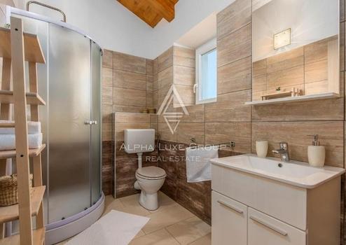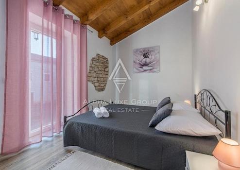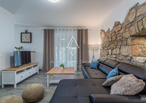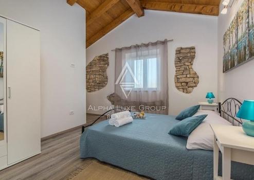 Entdecken Sie ein einzigartiges Anwesen in Lovreč, Istrien, nur 16 km von Poreč und 12 km von malerischen Stränden entfernt. Diese im Jahr 2020 vollständig renovierte Villa bietet 142m2 eleganten Wohnraum, der modernen Luxus mit traditionellem istrischen Charme verbindet. Im Erdgeschoss befinden sich ein geräumiger Wohnbereich mit integrierter Küche und Essplatz, ein Badezimmer und ein Abstellraum. Eine interne Treppe führt zu drei Schlafzimmern im ersten Stock, darunter das Hauptschlafzimmer mit eigenem Bad, während die anderen beiden ein Bad teilen.