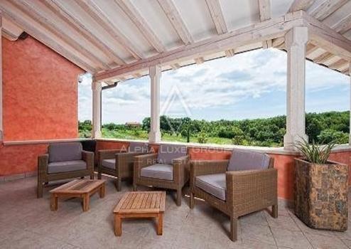 Nur zehn Autominuten vom Zentrum Rovinjs entfernt, entdecken Sie in dieser weitläufigen Villa eine Mischung aus Moderne und Tradition. Mit einer Fläche von 388 m2 umfasst dieses Anwesen ein riesiges Gartenareal von 5.383 m2, das ein Reich der Möglichkeiten für zukünftige Verbesserungen verspricht.