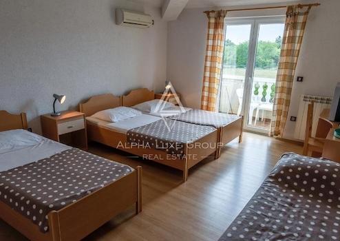 Diese Investition besteht aus zwei unabhängigen, nebeneinander liegenden Immobilien, die eine Einheit bilden. Im Erdgeschoss eines Gebäudes befindet sich ein vielseitiger Gewerberaum mit Küche und angrenzender Terrasse, geeignet für verschiedene Geschäftsaktivitäten. Im ersten Stock befindet sich eine geräumige Fünf-Zimmer-Wohnung, während der Keller mehrere Mehrzweckräume und einen Heizungsraum bietet. Ausreichend Parkplätze sind vor dem Gebäude vorhanden. Das angrenzende Apartmenthaus umfasst einen großen Garten und 5 Studio-Apartments, die sich über zwei Etagen erstrecken, mit Gas- und Elektroheizung. Im Garten besteht die Möglichkeit, einen Swimmingpool zu bauen.