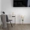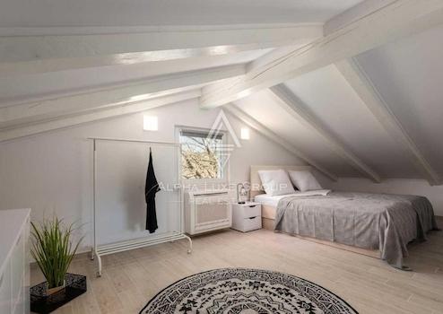 Die Villa erstreckt sich über zwei klimatisierte Etagen sowie ein Dachgeschoss, die alle für Komfort und Luxus gestaltet wurden. Neben der Klimaanlage ist im gesamten Haus eine elektrische Fußbodenheizung installiert. Das Erdgeschoss beherbergt ein Badezimmer, eine voll ausgestattete Küche mit Essbereich und ein zeitgenössisch gestaltetes Wohnzimmer mit direktem Zugang zur Terrasse. Das erste Stockwerk verfügt über ein Schlafzimmer und ein Badezimmer, während das Dachgeschoss in ein zusätzliches gemütliches Schlafzimmer umgewandelt wurde.