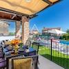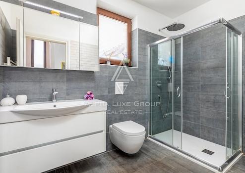 Das zweistöckige Haus erstreckt sich über eine Wohnfläche von 140m² auf einem 540m² großen Grundstück und ist ein Inbegriff von Eleganz und Komfort. Das Erdgeschoss umfasst eine einladende Eingangshalle, die in einen großzügigen Wohnbereich mit einer gut ausgestatteten Küche und einem Essbereich, ein Badezimmer und einen Hauswirtschaftsraum übergeht. Im ersten Stock befinden sich drei ruhige Schlafzimmer und ein gut ausgestattetes Badezimmer, jedes mit Blick auf die malerische Umgebung. Im Außenbereich erwartet Sie eine Oase der Entspannung, komplett mit einem 30m² großen Pool, einer Sonnenterrasse, einer Außendusche und einem grünen Garten, alles innerhalb eines gesicherten, umzäunten Bereichs.