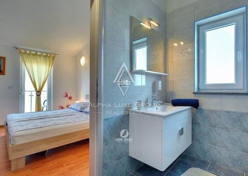 Dieses einladende Haus, mit einem erfrischenden Swimmingpool, erstreckt sich über 200 m² auf zwei Ebenen. Das Erdgeschoss verfügt über ein gemütliches Wohnzimmer mit direktem Zugang zum Pool, eine voll ausgestattete Küche, einen Essbereich, eine Gästetoilette und ein Schlafzimmer mit eigenem Bad. Im ersten Stock finden Sie drei weitere Schlafzimmer, jedes mit eigenem Bad und einem Balkon, der einen atemberaubenden Blick auf das Meer und die malerische Landschaft bietet. Alle Schlafzimmer sind mit Klimaanlage und Satelliten-TV für höchsten Komfort ausgestattet.