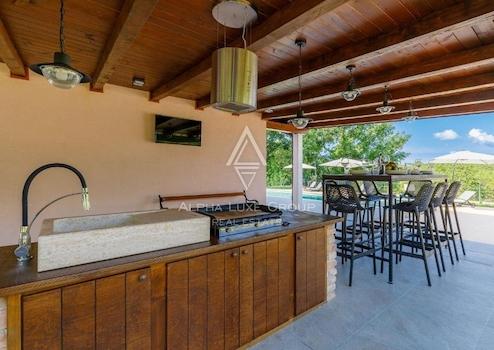 In einem idyllischen Dorf nahe Umag, dem Eingangstor Nordistriens, bekannt für seinen Küsten- und Landlebensstil, steht eine luxuriöse Familien-Villa zum Verkauf. Auf einem 650 m² großen Grundstück erstreckt sich die Villa über 240 m² und liegt nur 6 Kilometer vom Meer entfernt, eine perfekte Mischung aus Ruhe und Erreichbarkeit.