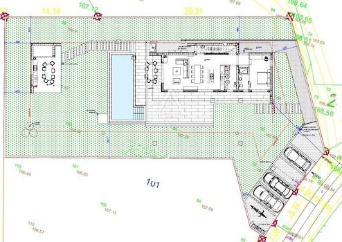 In Matulini, einem idyllischen Dorf nur 10 Minuten Fahrt vom pulsierenden Herzen von Poreč und seiner einladenden Küste entfernt, entsteht eine hochmoderne Villa. Auf einem großzügigen Grundstück von 1080 m², umgeben von der natürlichen Ruhe eines Waldes und der Wärme benachbarter Häuser, verspricht dieses Anwesen eine ideale Mischung aus Privatsphäre und Gemeinschaftsgefühl. Die erstklassige Lage bietet das Beste aus zwei Welten: die Friedlichkeit des Landlebens zusammen mit der einfachen Erreichbarkeit städtischer Annehmlichkeiten und Strände.