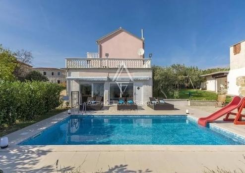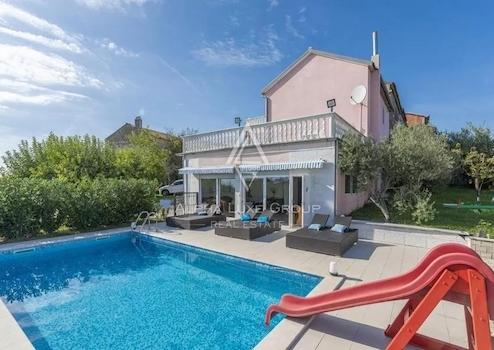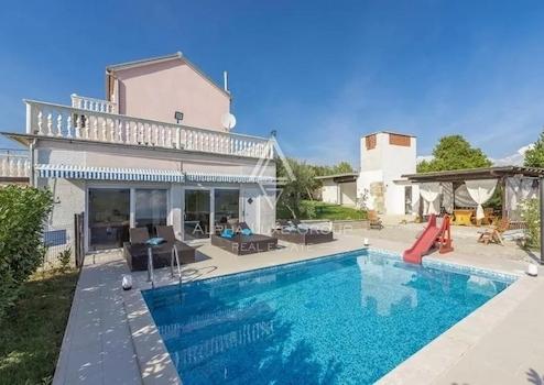 Nur eine kurze Fahrt vom Herzen Brtoniglas entfernt, erstreckt sich dieses 220 m² große Anwesen über ein Untergeschoss, Erdgeschoss und erstes Stockwerk. Das Untergeschoss bietet eine Küche und einen Raum für Erholung und gesellschaftliche Zusammenkünfte, sowie eine Toilette und einen Lagerraum. Im Erdgeschoss befinden sich ein Wohnzimmer, Essbereich, Küche, Toilette und eine weitläufige Terrasse. Das erste Stockwerk besteht aus drei Schlafzimmern, einem Badezimmer und einer weiteren Terrasse. Das Äußere der Immobilie umfasst einen akribisch angelegten Garten mit einem 30 m² großen Swimmingpool, einer Sonnenterrasse, einer überdachten Sommerküche mit offenem Kamin, einem Pavillon und einem Spielplatz für Kinder.