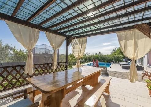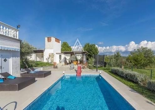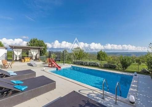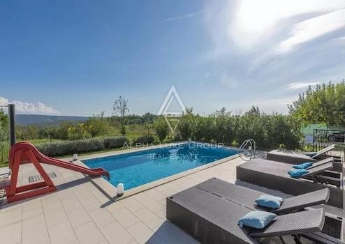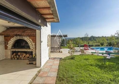 In der malerischen Stadt Brtonigla im nordwestlichen Teil Istriens steht jetzt eine beeindruckende Residenz mit atemberaubendem Panoramablick zum Verkauf. Gelegen auf einem Hügel, 141 Meter hoch, inmitten von Weinbergen und Olivenhainen, zeichnet sich Brtonigla durch seine einzigartige geografische Besonderheit aus - es beherbergt alle Bodentypen, die in Istrien auf seiner Fläche von 33 km² zu finden sind. Der Ort ist eine perfekte Mischung aus Meerescharme, üppigen Weinbergen, Olivenplantagen und grünen Landschaften, die zu unberührten Stränden mit kristallklarem Meer führen. Brtonigla verkörpert sowohl Genuss als auch Abenteuer und bietet eine reiche Palette an Weinkellern, authentische istrische Küche, Naturparks und eine vielfältige Flora und Fauna.