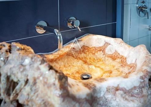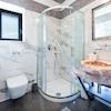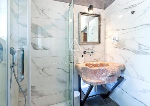 Die Badezimmer sind ausgestattet mit "ONLY" Duschkabinen mit Verzögerern, einzigartigen Kristall-Kalzitspülen und hochwertiger Catalano-Sanitärkeramik mit Geberit Sigma-Spülkästen. Das Wohnzimmer verfügt über einen thermischen Kamin, eine zentrale Staubsauganlage und das Haus wird von einem 300-l-Boiler plus einem 400-l-Wasserspeicher für die Heizung (Cordivari) versorgt, mit der Option, Solarmodule und eine Wärmepumpe hinzuzufügen.