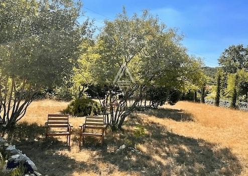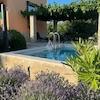 Außenbereich: 2000 m² privater Garten, Schatten durch Olivenbäume, Garage für Fahrräder, Kinderspielplatz, kleiner Pool mit Dusche.