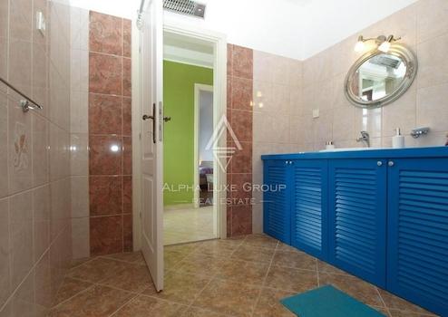 Ein offenes Design vereint Küche, Ess- und Wohnzimmer zu einem kohäsiven und einladenden Raum, ergänzt durch eine Toilette und einen 30 m² großen Abstellraum. Das Erdgeschoss öffnet sich auf eine überdachte Terrasse, ideal zum Entspannen und Genießen der Natur. Eine Sommerküche, integriert mit dem Hauptgebäude, ermöglicht einen einfachen Zugang zum Außenbereich.