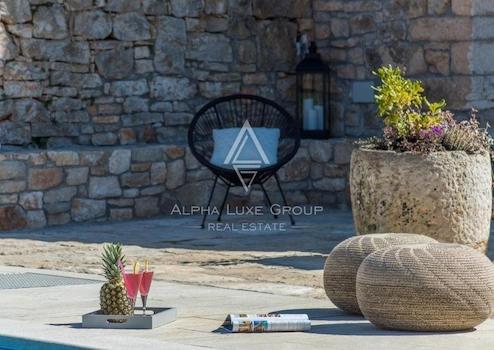 Das Leben im Freien wird durch eine geräumige überdachte Terrasse betont, die einen malerischen Blick auf die grüne Landschaft und den einladenden Swimmingpool bietet. Der Poolbereich, der 2022 verbessert wurde, umfasst eine Sonnenterrasse und eine traditionell gestaltete Sommerküche mit Kamin, perfekt für Mahlzeiten und Unterhaltung im Freien.