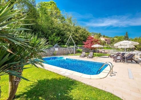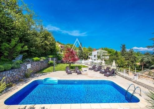 In der bezaubernden Stadt Lovran, in der Nähe von Opatija, erwartet Sie eine einzigartige Investitionsmöglichkeit. Wir präsentieren ein weitläufiges Anwesen von 700m², ergänzt durch 6000m² Land, genehmigt für ein Wellnessresort - eine Gelegenheit, ein Stück des Charmes der Opatija Riviera zu besitzen. Das Anwesen, umgeben von der üppigen Vegetation der Učka und mit Meerblick, liegt in einer ruhigen, dennoch gut erreichbaren Lage.