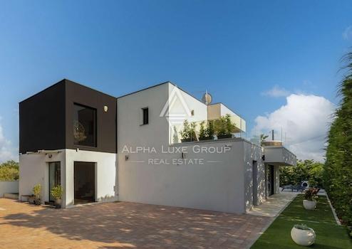 Diese Villa umarmt die Moderne mit ihrem Smart-Home-System, Sicherheitskameras und Alarmanlage. Komfort wird durch eine Fußbodenheizung, betrieben durch eine Wärmepumpe, sowie eine Fan-Coil-Kühlung gewährleistet. Aluminium-Tischlerei verstärkt die zeitgenössische Ästhetik der Villa.