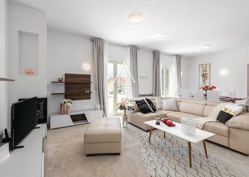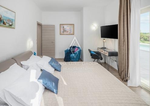 In der ruhigen Landschaft von Vodnjan liegt eine prächtige Luxusvilla, die eine beeindruckende Wohnfläche von 460 m² auf einem weitläufigen Grundstück von 5800 m² bietet. 2018 aus hochwertigen Materialien erbaut, ist diese Villa ein Zeugnis von Luxus und Design. Sie verfügt über zwei separate Apartments, jedes mit eigenem Eingang, was Privatsphäre und Flexibilität bietet.