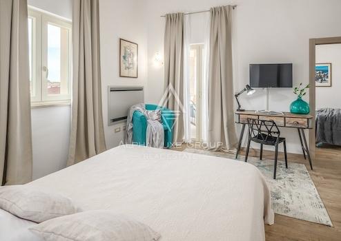Das Erdgeschoss beherbergt ein Apartment, das ein Wohnzimmer mit Küche, Speisekammer, Badezimmer, WC, Schlafzimmer sowie ein Fitnessstudio und eine Sauna umfasst. Das erste Stockwerk bietet ein geräumiges Wohnzimmer, drei Schlafzimmer, drei Bäder und zwei Terrassen, die Komfort und Eleganz vereinen.