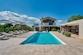 Das Anwesen wird durch einen großzügigen Garten ergänzt, der Sie mit einer eleganten Auffahrt und einem überdachten Parkplatz für zwei Fahrzeuge empfängt. Der Außenbereich ist eine Oase der Entspannung mit einem Infinity-Pool, umgeben von einer Sonnenterrasse, einem voll ausgestatteten Nebengebäude, das auch als Wohnraum dient, und einer einladenden Sommerküche.