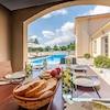 Im Außenbereich überzeugt das Anwesen mit einem eingezäunten, grün gestalteten Garten. Im Mittelpunkt steht ein Swimmingpool mit Sonnenbereich, der Entspannung unvermeidlich macht. Eine überdachte Außenküche, komplett mit offenem Kamin und Sitzbereich, lädt zu intimen Zusammenkünften und unvergesslichen Mahlzeiten im Freien ein.