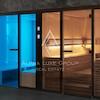Der 50 m² große Keller beherbergt einen Wellnessbereich mit Saunen und einen Nutzraum mit Waschküche. Das Erdgeschoss, das sich über 90 m² erstreckt, geht nahtlos in eine 25 m² große verglaste Veranda über, die als komfortable Erweiterung der Innenküche und des Essbereichs dient. Zusätzlich vervollständigen zwei Schlafzimmer, zwei Badezimmer und ein Abstellraum diese Ebene.