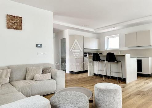 Erleben Sie die perfekte Mischung aus moderner Raffinesse und Ruhe im geräumigen und hell erleuchteten Wohnzimmer der Villa, das auf eine geschützte Terrasse führt, auf der die Brise Geschichten des Adriatischen Meeres erzählt. Die schicke Küche, ein geräumiges Schlafzimmer, ein raffiniertes Badezimmer und eine zusätzliche Gästetoilette befinden sich im Erdgeschoss, während eine künstlerische Treppe zu einer höheren Komfortebene führt. Hier verfügen drei luxuriöse Schlafzimmer jeweils über ein eigenes Bad und Zugang zu einem majestätischen Balkon, der das Panorama der Meereslandschaft einrahmt.