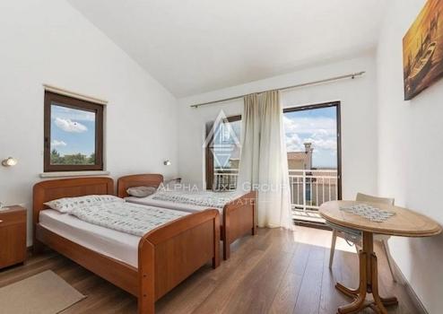 Suchen Sie eine moderne Villa in ruhiger Lage nahe Poreč in Istrien? Wir präsentieren Ihnen ein geräumiges Haus mit einer Fläche von 166 m2, verteilt auf zwei Etagen. Im Erdgeschoss erwartet Sie ein offener Wohnbereich mit Wohnzimmer, Esszimmer und Küche, ein Schlafzimmer mit angrenzendem Badezimmer und ein separates WC mit Waschküche. Im Obergeschoss finden Sie zwei weitere Schlafzimmer, jeweils mit eigenem Bad und Terrasse, von denen Sie einen atemberaubenden Blick auf das Meer und die umliegende Landschaft genießen können. Im Außenbereich steht ein Swimmingpool mit Sonnenterrasse zur Verfügung, von dem aus Sie die beeindruckende Landschaft bewundern können. Die Villa ist voll möbliert und sowohl als Investition in den Tourismus als auch für dauerhaftes Wohnen in dieser begehrten Lage ideal.