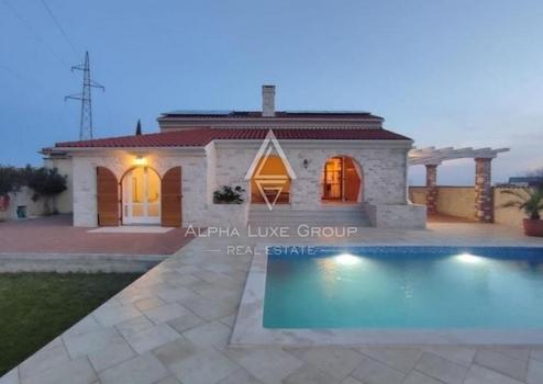 Beim Bau dieses einstöckigen Hauses wurden die hochwertigsten Materialien verwendet und sein charmanter Stil ist mit Campanal-Stein und einer in Italien entworfenen Küche aus Akazienholz geschmückt. Alle Küchengeräte sind von Miele, Keramik und Sanitärkeramik von Bosch.