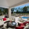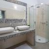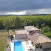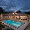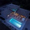 Eine Innentreppe führt in den ersten Stock, wo er über zwei Schlafzimmer mit eigenem Bad und eine überdachte Terrasse verfügt. Die großzügig angelegten Gärten sind vollständig eingezäunt und mit einem automatischen Bewässerungssystem ausgestattet. Der Innenhof erstreckt sich über einen 42 m² großen beheizten Salzwasserpool, einen Kinderspielplatz und einen Grillplatz mit Feuerstelle.