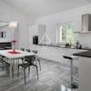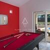 Im Erdgeschoss befindet sich ein großzügiger offener Raum, der eine Ecke mit Billardtisch, ein Wohnzimmer, ein Esszimmer und eine Küche mit Zugang zu einer geräumigen überdachten Terrasse umfasst. Zwei Schlafzimmer mit eigenem Bad, Gäste-WC und Abstellraum befinden sich auf derselben Etage.