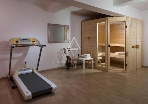 Im Untergeschoss befindet sich ein Spa- und Wellnessbereich mit Whirlpool, Sauna, Fitnessraum und Bad.