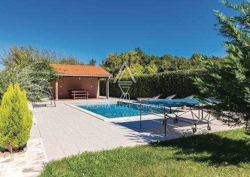 Dieses romantische istrische Steinhaus hat noch einen weiteren Vorteil: Der geräumige und luxuriöse Swimmingpool wird Sie auf den ersten Blick erobern. Der Swimmingpool ist perfekt in den wunderschönen Garten integriert und schafft eine Oase der Ruhe und Entspannung, die Sie an heißen Sommertagen erfrischt.