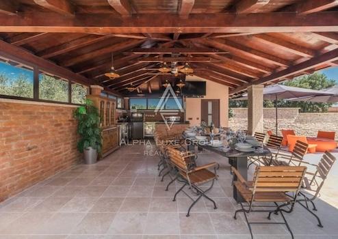 Die Villa liegt 6 km vom Meer, 3 km von der Autobahn und nur 7 km vom Zentrum von Pula entfernt und verfügt über eine Fläche von 600 m2 auf einem großzügigen Grundstück von 1780 m2.