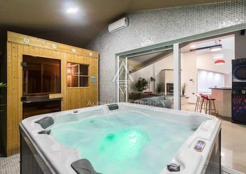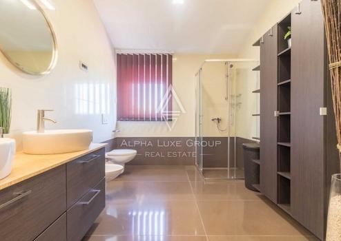 Die erste Etage der Villa besteht aus einem Flur, einer Küche mit Esszimmer und einem großen Wohnzimmer, drei großen Schlafzimmern, zwei Badezimmern, einem Raum mit Sauna und Whirlpool sowie einem Raum mit Trainingsgeräten. Die erste Etage verfügt über einen Balkon ohne Dach.