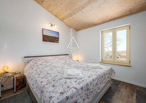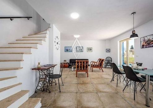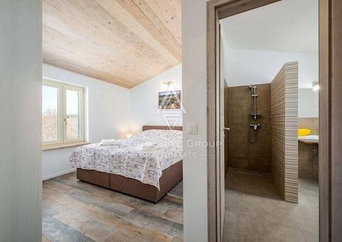 Dieses schöne Haus mit Pool befindet sich in ruhiger Lage, nur 14 km von Poreč und den Stränden entfernt. Die gesamte Grundstücksfläche beträgt 613 m2 und die gesamte Hausfläche beträgt 106 m2, verteilt auf zwei Etagen.