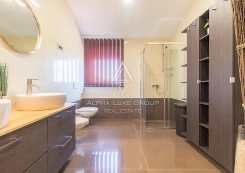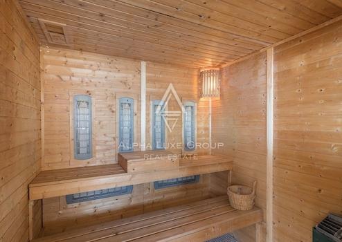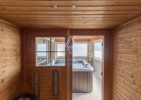 Das Anwesen besteht aus drei separaten Wohneinheiten, die unabhängig voneinander oder gemeinsam genutzt werden können. Im Erdgeschoss befindet sich die kleinste Einheit neben einer Garage, von der aus eine Treppe in den Keller und das Haupttreppenhaus zu allen Einheiten führt. Der Hauptwohnbereich im Erdgeschoss umfasst ein Wohnzimmer, eine Küche, ein Esszimmer, drei Schlafzimmer und zwei Terrassen. Im Obergeschoss bietet eine Wohnung ein Wohnzimmer, eine Küche, ein Esszimmer, drei Schlafzimmer, zwei Bäder und einen Wellnessbereich mit Jacuzzi, Sauna und Fitnessraum.