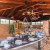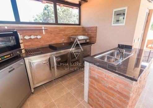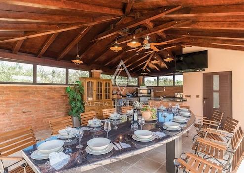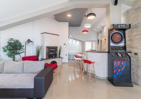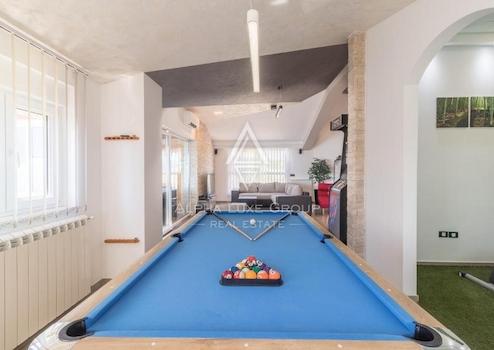 Der weitläufige Garten bietet ausreichend Parkplätze für sechs bis sieben Fahrzeuge, einen geräumigen Swimmingpool, eine Sommerküche, einen Kinderspielplatz und einen multifunktionalen Sportplatz, was dieses Haus zu einem idealen Ort für das Familienleben und aktive Erholung macht.