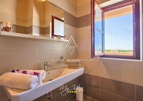 Unweit von Svetvinčenat liegt diese wunderschöne, moderne Villa mit einem großen Pool (60m2) und einem gepflegten Garten. In einer ruhigen Umgebung gelegen, dient sie als perfekter Rückzugsort vom Trubel des modernen Lebens. Die Villa umfasst drei Schlafzimmer, jedes mit eigenem Bad und Balkon, ein Wohnzimmer, eine Küche und einen Essbereich. Zwei geräumige Schlafzimmer befinden sich im ersten Stock, während das dritte Schlafzimmer, Wohnzimmer, Küche und Essbereich im Erdgeschoss liegen. Im Außenbereich lädt ein großer Pool zur Entspannung ein. Dieses 1980m2 große Anwesen ist vollständig eingezäunt. Gebaut und ausgestattet mit hochwertigen Materialien, verfügt die Villa über Fußbodenheizung, Klimaanlage und zwei Kamine. Eine ideale Gelegenheit für diejenigen, die ihr neues Zuhause genießen oder ein bereits etabliertes Geschäft fortsetzen möchten!
