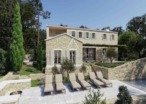 Diese Villa kombiniert moderne Architektur und alte Steinfundamente mit Blick auf das Meer, Weinberge und Olivenhaine.