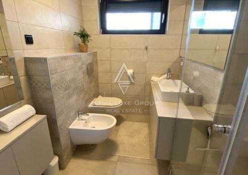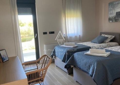 Der Innenbereich der Villa ist modern mit hochwertigen Möbeln und moderner Ausstattung ausgestattet. Es ist mit stilvoll ausgewählten Details und warmen Farben dekoriert, die für zusätzlichen Komfort sorgen. Glaswände sorgen für viel natürliches Licht und Luftigkeit.