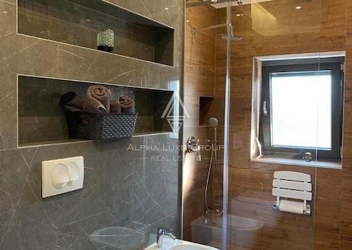 Die Räume sind klimatisiert und mit Fußbodenheizung ausgestattet. Die Villa ist rustikal und geschmackvoll eingerichtet, was den Aufenthalt angenehm macht, und die Kombination aus Stein und Holz unterstreicht ihren architektonischen Wert.
