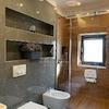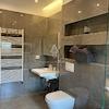 Das geräumige Erdgeschoss verfügt über ein Wohnzimmer mit offenem Raumkonzept, ein Esszimmer und eine Küche mit Zugang zu einer geräumigen überdachten Terrasse, ein Schlafzimmer mit Bad, eine Toilette, einen Wellnessbereich mit Sauna, Whirlpool und Dusche. eine Waschküche und ein Abstellraum.