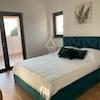 Die Innentreppe führt in den ersten Stock mit drei Schlafzimmern, zwei Badezimmern und einer großzügigen Terrasse mit Panoramablick auf das Grüne und das Meer.