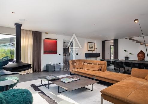 Im Obergeschoss verfügt die Wohnung über ein Hauptschlafzimmer, einen geräumigen begehbaren Kleiderschrank und zwei weitere Schlafzimmer, jeweils mit eigenem Bad. Darüber hinaus steht Ihnen auch eine Waschküche zur Verfügung. Das moderne Innendesign schafft eine warme und einladende Atmosphäre, die viel natürliches Licht hereinlässt.