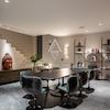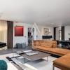 Auf der unteren Etage verfügt die Wohnung über einen Essbereich neben einer gut ausgestatteten Küche, ein geräumiges Wohnzimmer mit modernem Kamin, eine besonders gemütliche Sitzecke, einen persönlichen Fitnessraum und ein Schlafzimmer mit Toilette.