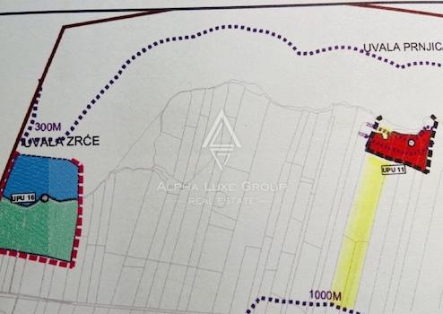 b) Kauf der Hälfte der idealen Hälfte von 67.401 m2 von der Autobahn Prometnica selbst bis zum Strand und Meer von Prnjica. PREIS: 1.350.000 €