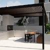 Im Erdgeschoss befindet sich eine Terrasse im Freien, die von einer Pergola beschattet wird. Es führt zu einer Treppe, die Sie auf die zweite Ebene hinunterführt, wo Sie einen 38 m² großen, beheizten Pool mit überlaufendem Design finden, der von einer Liegewiese aus Kieselsteinen umgeben ist. Daran angrenzend befindet sich eine Sommerküche mit Kamin, ebenfalls überdacht von einer Pergola für Ihren Komfort.