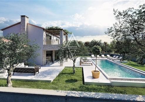 Schöne Steinvilla mit Pool und Meerblick, Istrien, Poreč