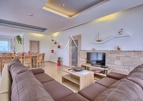 Die Villa hat einen Wohnbereich von 294 m2 und einen Grundstück von 2.000 m2, der im Keller, im Erdgeschoss und im Obergeschoss verteilt ist. Der Keller des Hauses verfügt über einen multifunktionalen Raum mit Fitnessausrüstung, Speisekammer und einem Kesselraum.