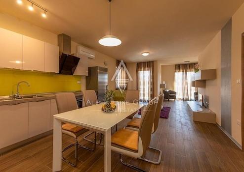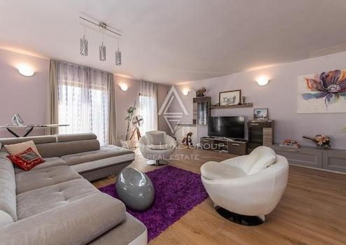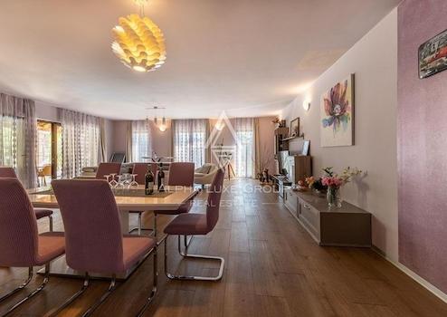 Im Erdgeschoss, ein großer Wohnbereich mit Küche, drei Schlafzimmern und einer Terrasse, die zum Hof am Pool führt, ist eine große Wohnung, die sich über das gesamte Erdgeschoss erstreckt.