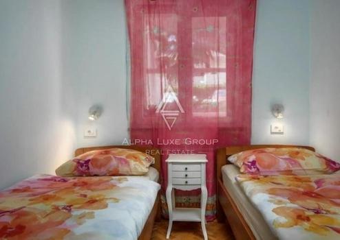 Das Haus erstreckt sich über vier Etagen, hat 500 m2 Wohnfläche, vier Wohneinheiten, 14 Zimmer, davon 11 Schlafzimmer, sieben Badezimmer, eine Dachterrasse mit Meerblick, eine Taverne, eine Garage, ein Spielzimmer und ein Swimmingpool (5x10) und ein Garten von 3000 m2.
