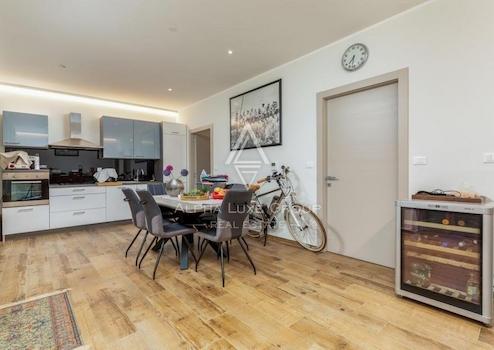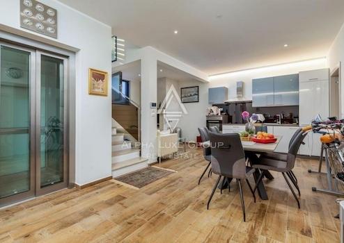 Die Innentreppe führt in den ersten Stock, wo sich vier Schlafzimmer mit jeweils eigenem Bad befinden, und vom ersten Stock führt die Treppe zu einer großzügigen Dachterrasse mit freiem Blick auf das Meer und die Brijuni-Inseln.