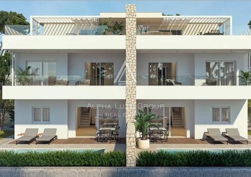 Die ALPHA LUXE GROUP verkauft exklusiv eine neue moderne Doppelhaushälfte nur 1 km von den Sandstränden von Kanegra entfernt mit wunderschönem Blick in die Natur und teilweisem Meerblick.