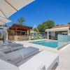 Im gepflegten Garten befinden sich ein Swimmingpool und eine Sommerküche.